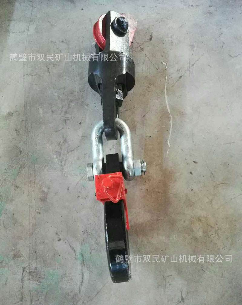 鉤頭及連接裝置,簡(jiǎn)稱為鉤頭裝置。該產(chǎn)品結(jié)構(gòu)簡(jiǎn)單,使用性能單一。零件全部由鍛件加工而成,鋼絲繩連接采用了兩種型式,其中5t、7t采用不偏心護(hù)繩環(huán),板卡