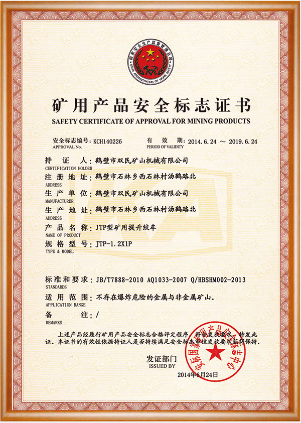 礦用產品安全標志證書